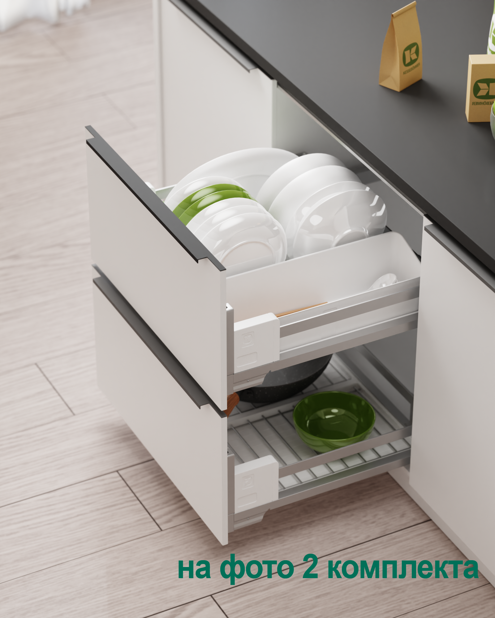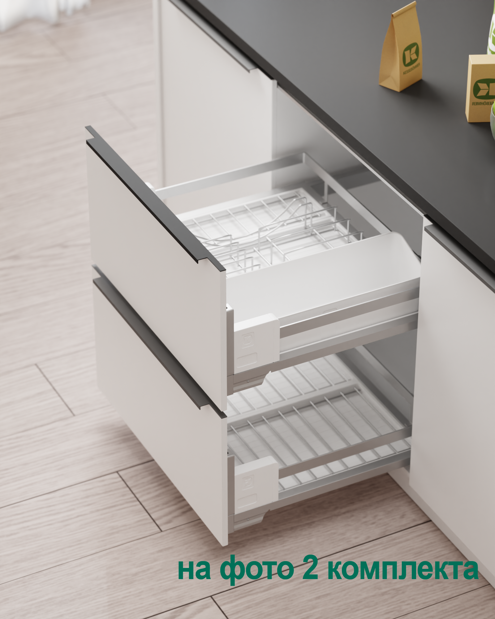 Модель — 1 большой модуль для посуды + 1 большой модуль с решеткой + модуль для столовых приборов