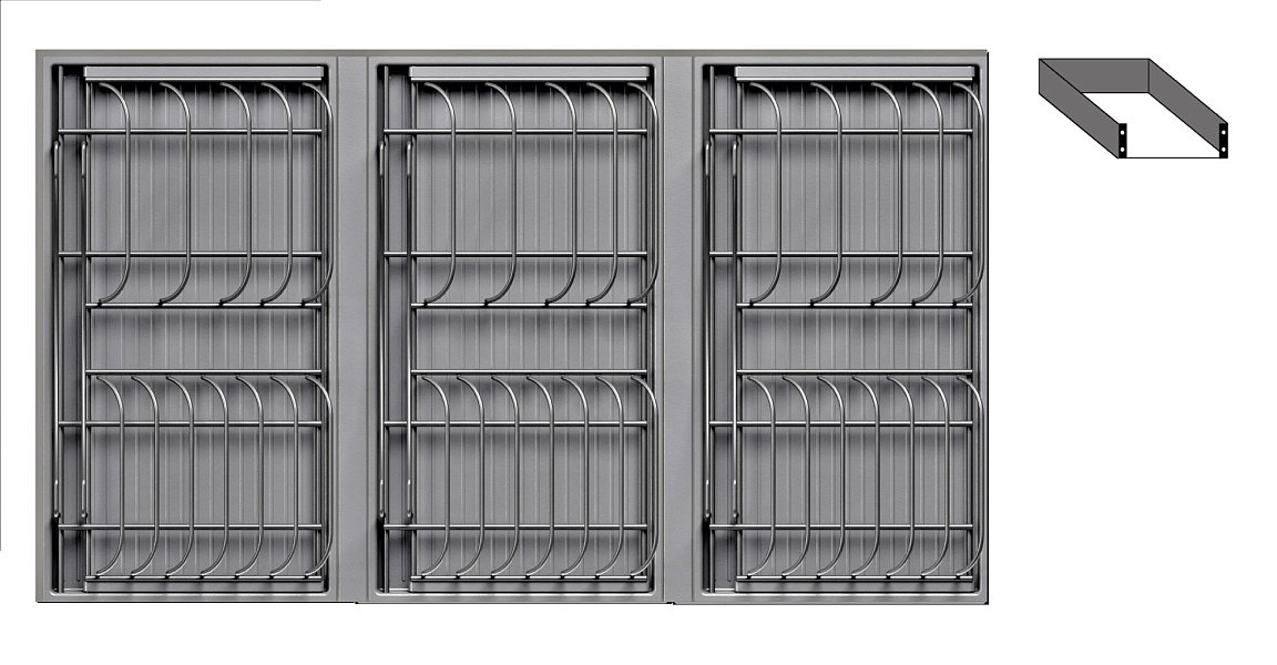 3 модуля для посуды большие (каждый модуль 423 x 248 мм, состоит из 1 х держатель металлический, 1 х поддон пластиковый, 2 х защелка-ограничитель)