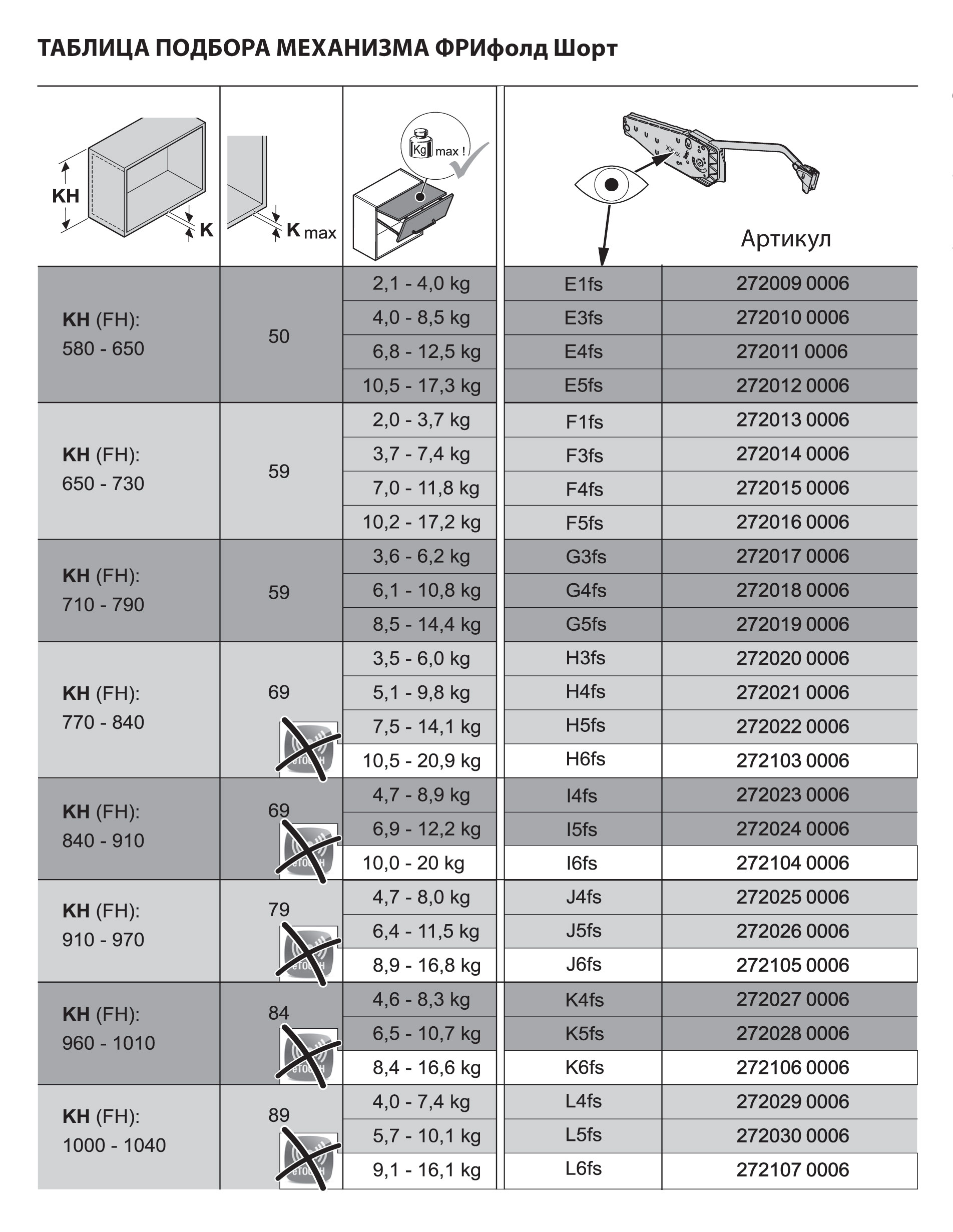 Подбор подъёмных механизмов Kesseböhmer