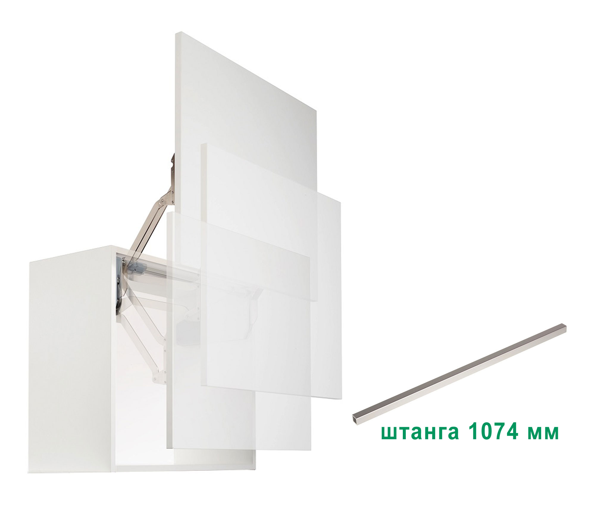При выборе максимальной ширины фасада 1200 мм в комплект добавляется штанга 1074 мм
