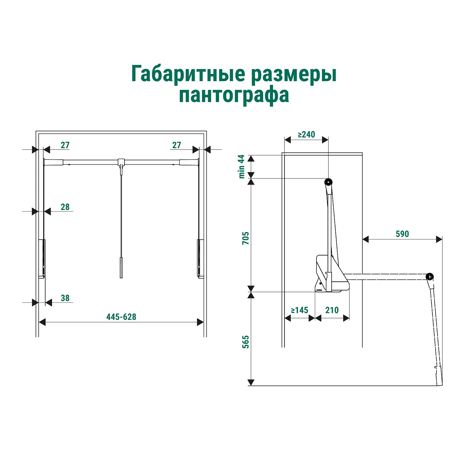 Пантограф для гардеробной стандартный Конеро W 445-628 мм нагрузка 0,5-12 кг цвет ЧЕРНЫЙ Kessebohmer | официальный магазин