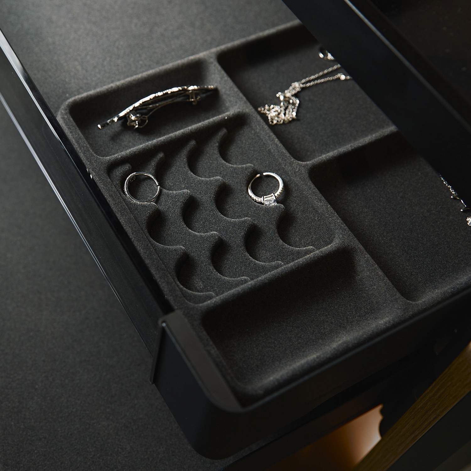 —Лоток для колец и украшений 6 ячеек в полку Конеро D 345 мм цвет ЧЕРНЫЙ Kesseböhmer